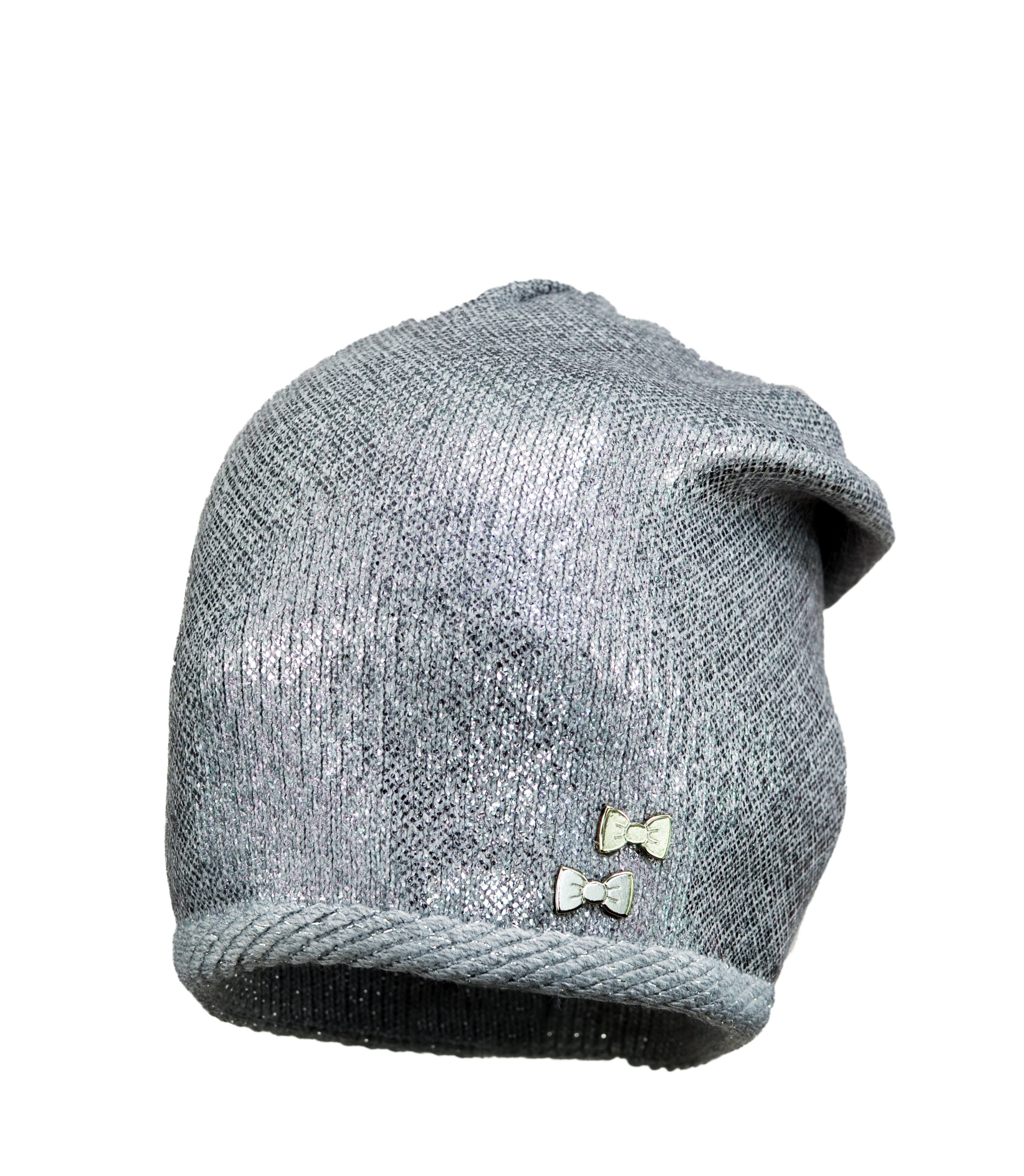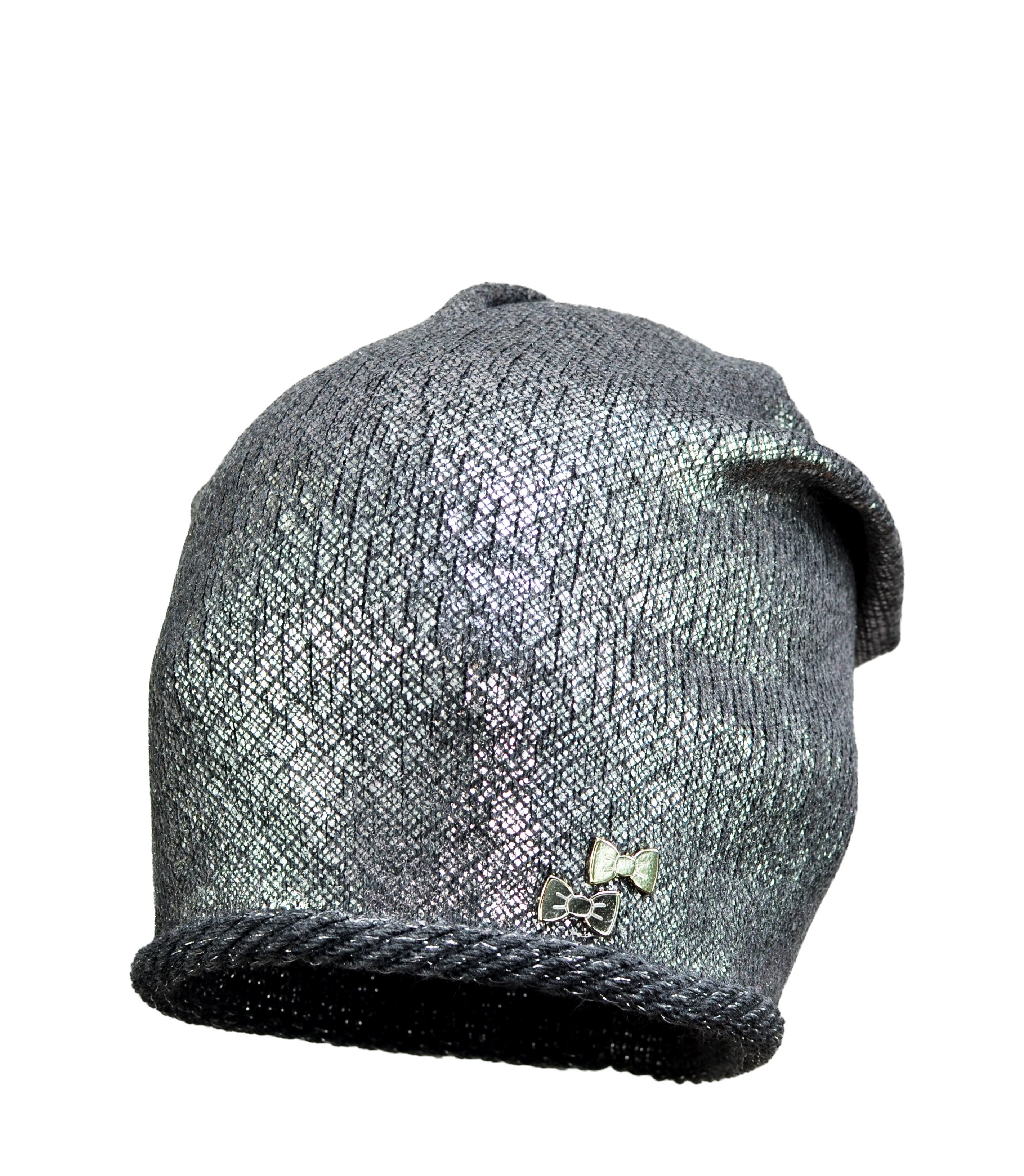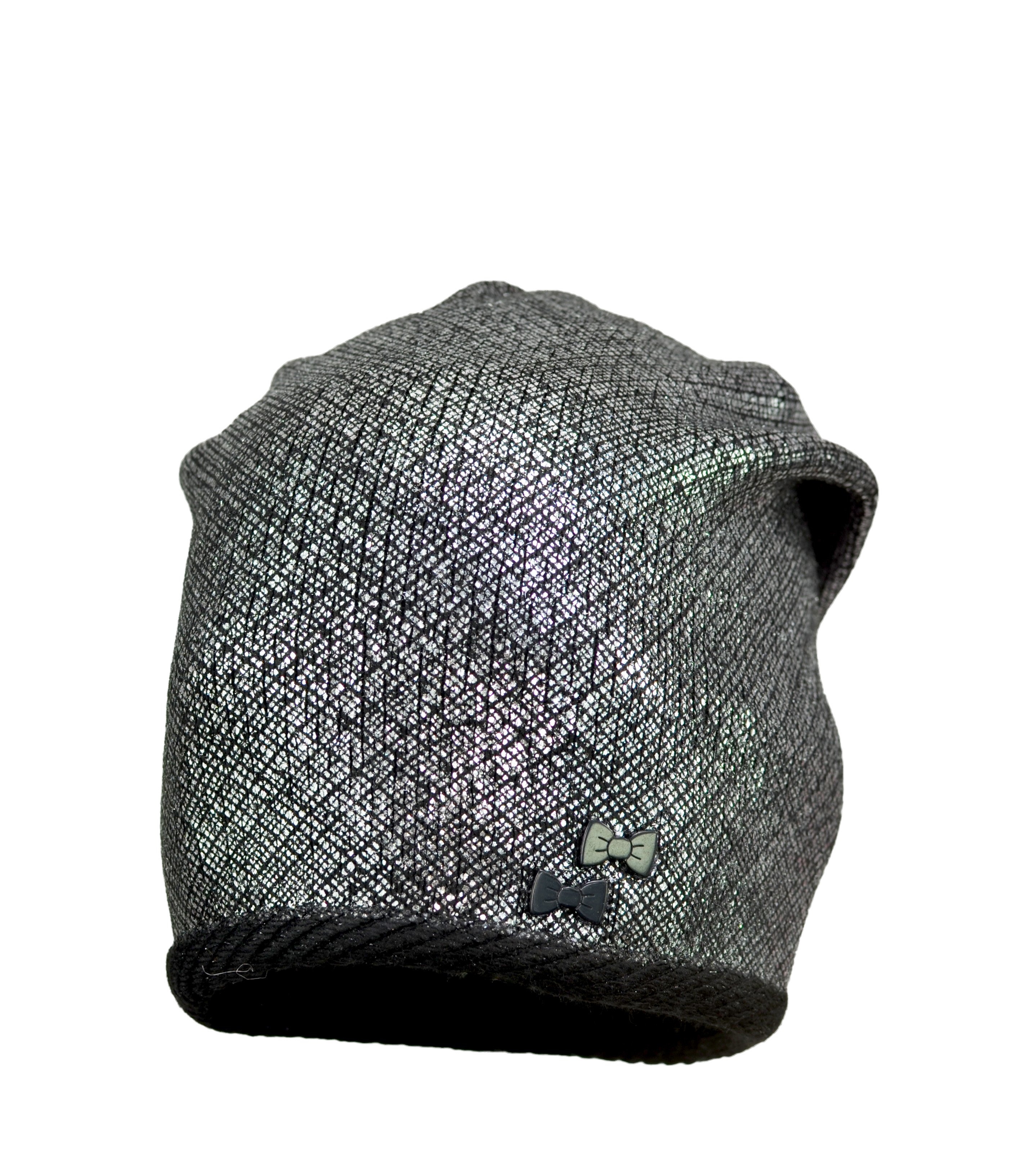 Bardzo modna damska czapka tzw. łapana z tyłu. Ozdobiona jest stylowym wzorem metalizowanej folii, Ściągacz ozdobiony delikatnym wałeczkiem. Wysoka jakość produktu. Wyprodukowano w Polsce.