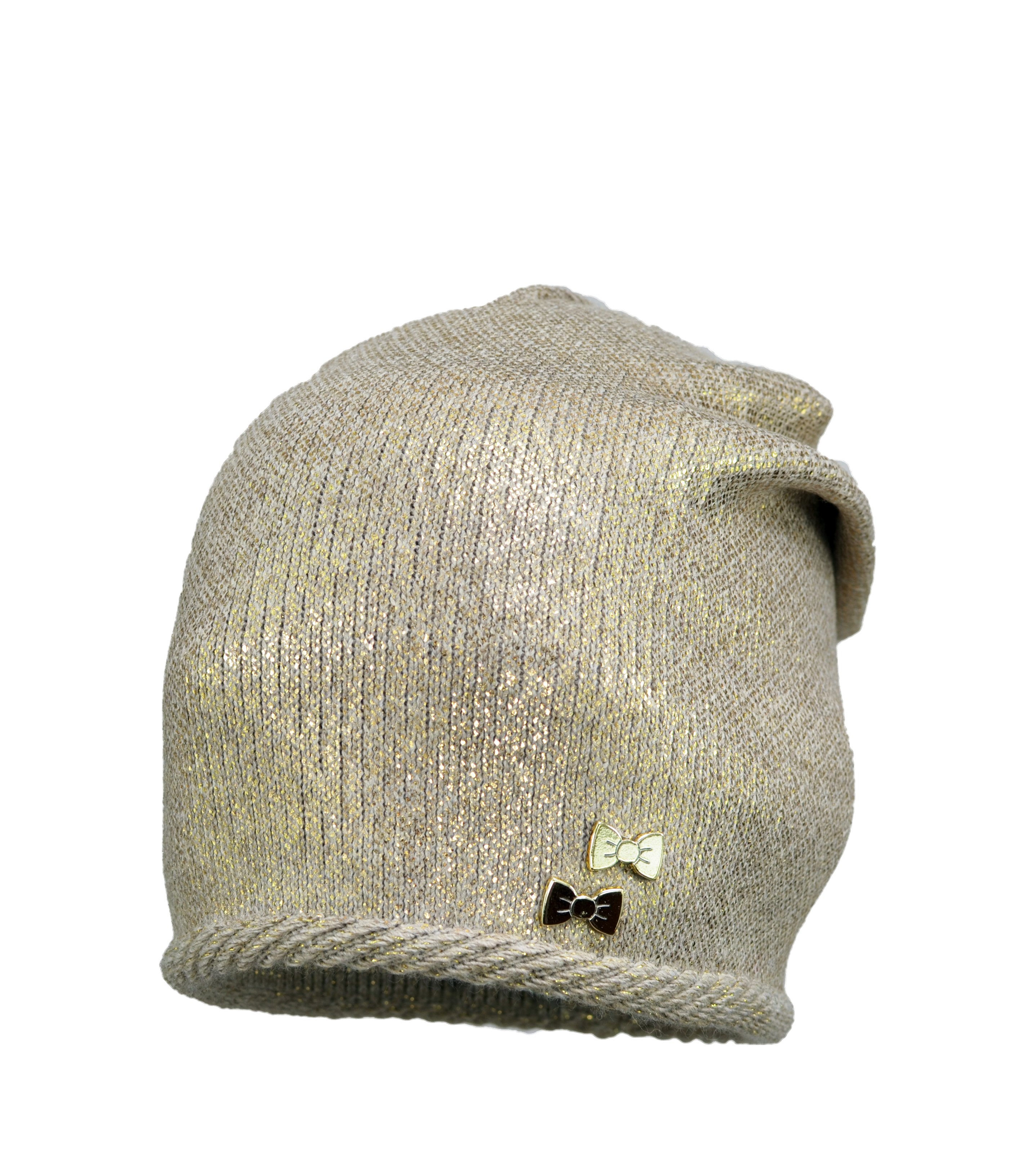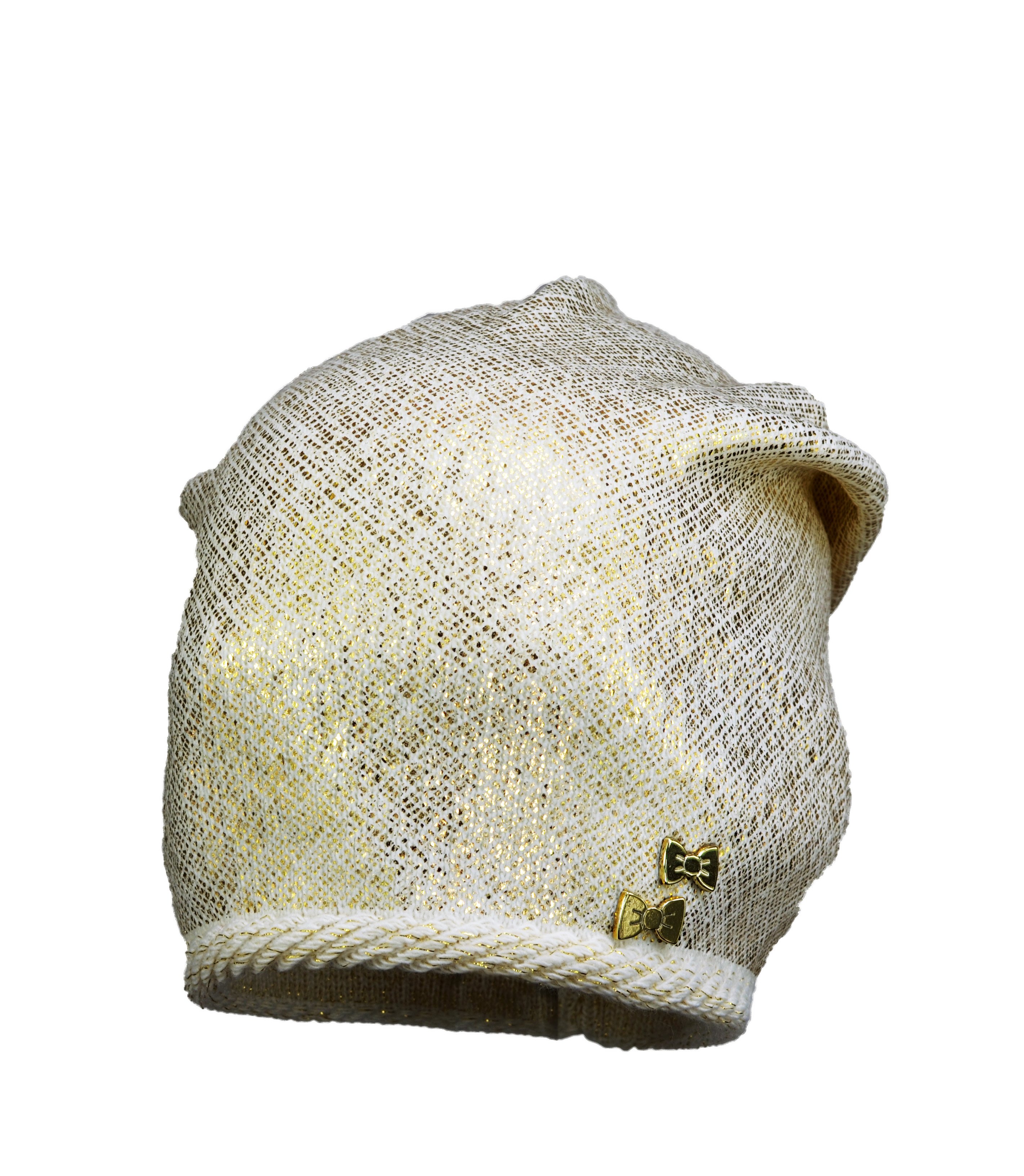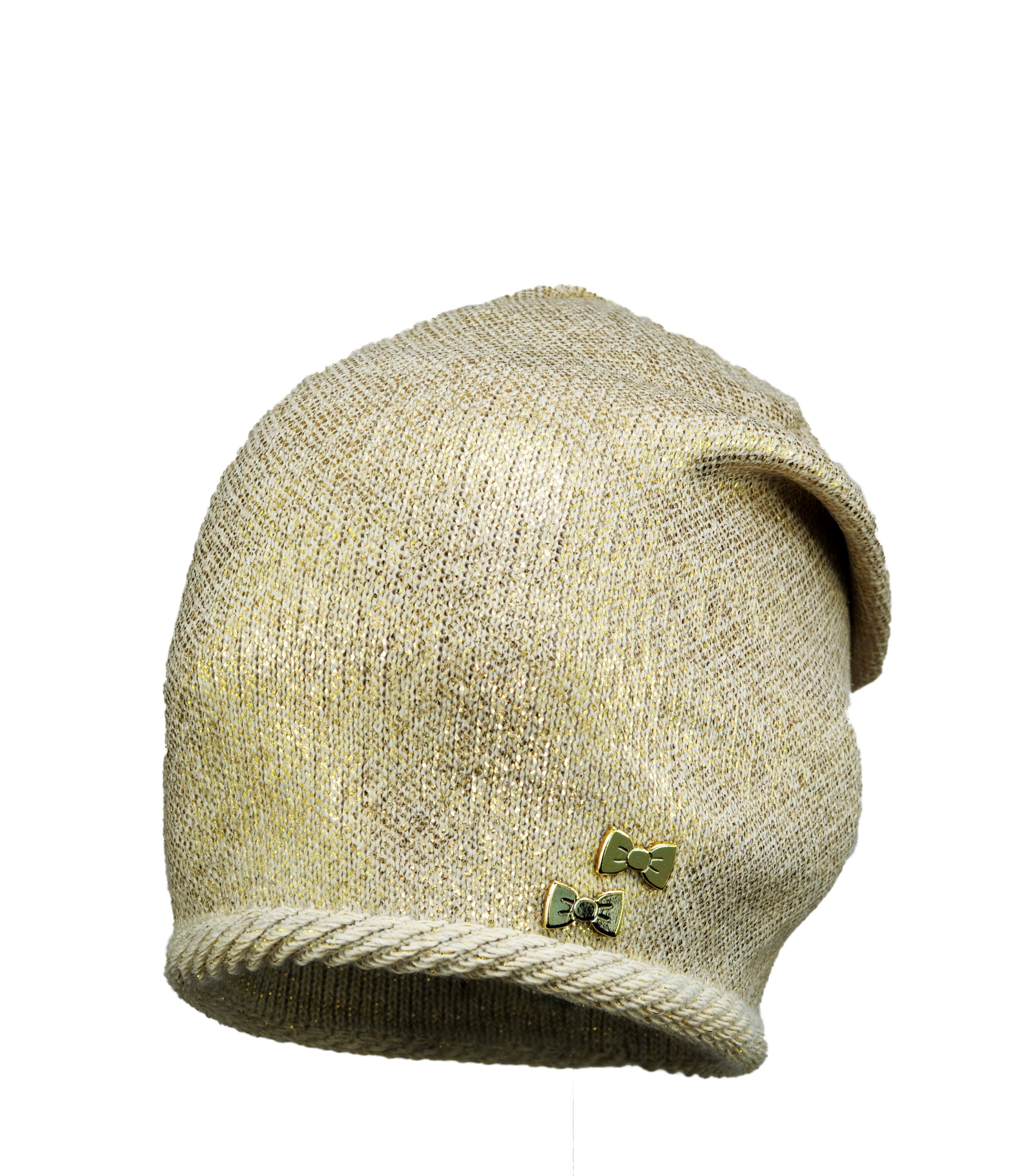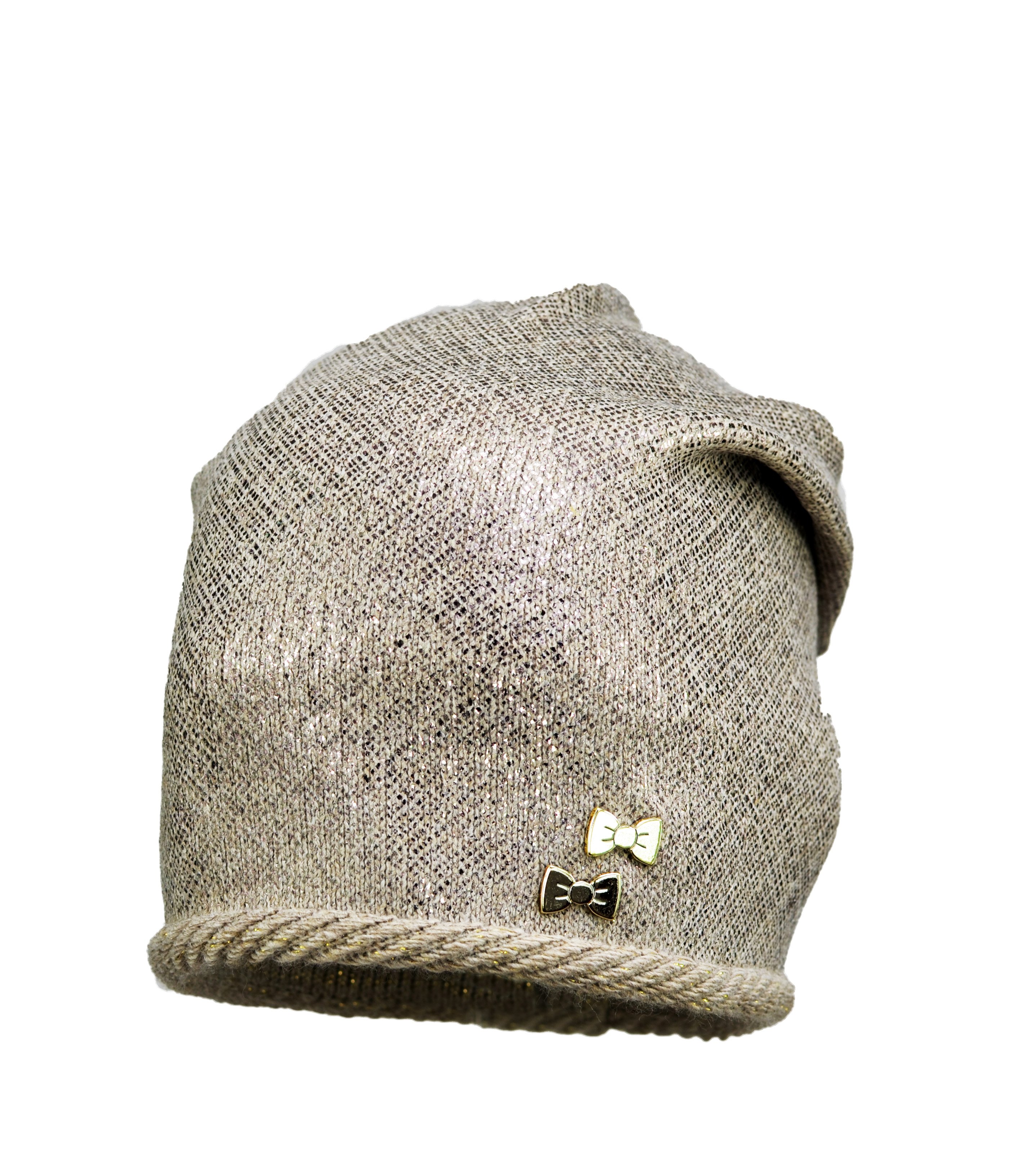 Bardzo modna damska czapka tzw. łapana z tyłu. Ozdobiona jest stylowym wzorem metalizowanej folii, Ściągacz ozdobiony delikatnym wałeczkiem. Wysoka jakość produktu. Wyprodukowano w Polsce.